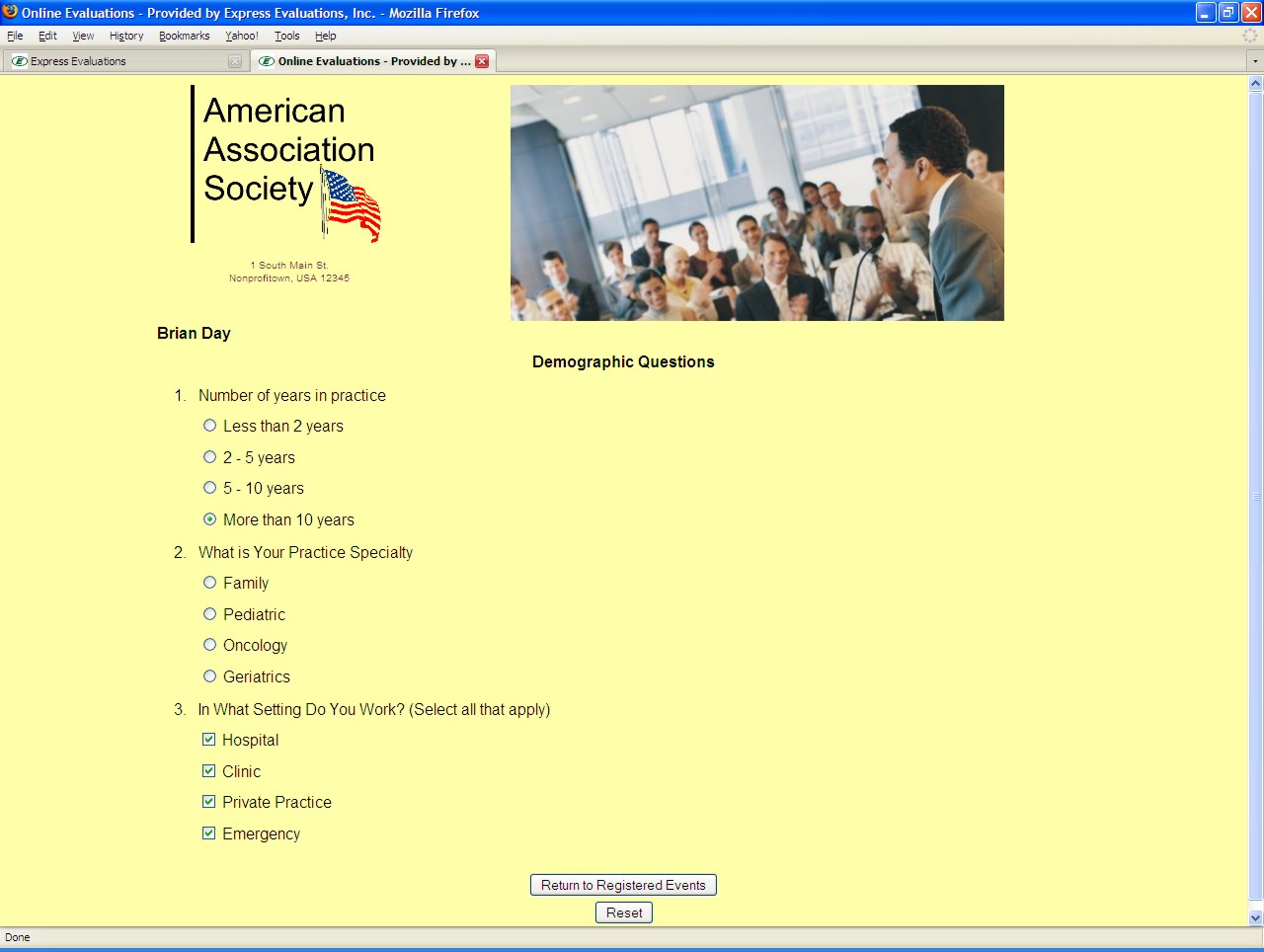Simple access - The site can be accessed via a link from your organization's web site. If you have a "members only" section that is password protected, then the attendee can automatically be identified using a "single-sign-on" approach. That way all traffic is directed through your site. |